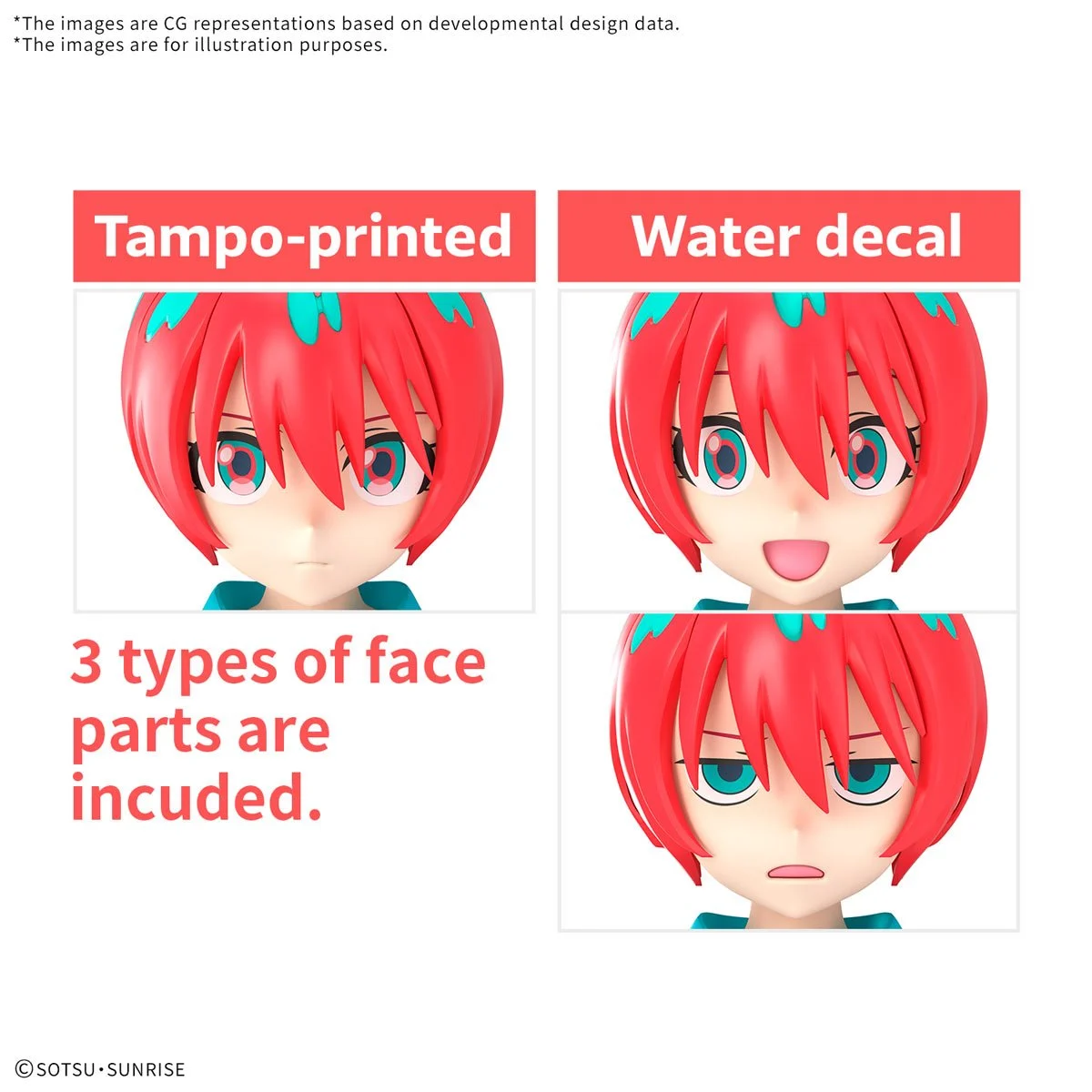 1 type of tampo printed face part and 2 tpes of water decal face parts are incuded.