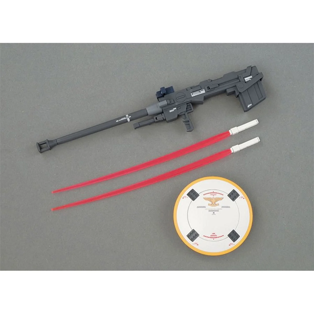 Small unpainted figure of Zechs Merquise standing and sitting included along with beam sabers, a variety of left and right hands, and decals designed by Hajime Katoki.